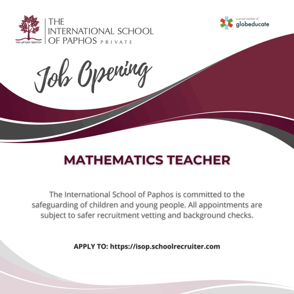 Mathematics Teacher / Jobs, Vacancies / By Olga Lobova Do you have a passion for Mathematics and a drive to inspire students to think critically? Learn more and apply here👉 https://isop.schoolrecruiter.com/